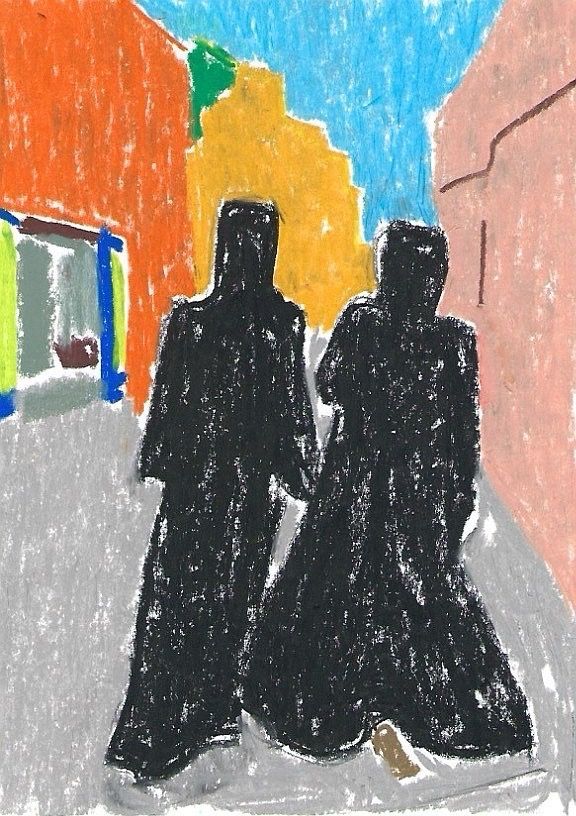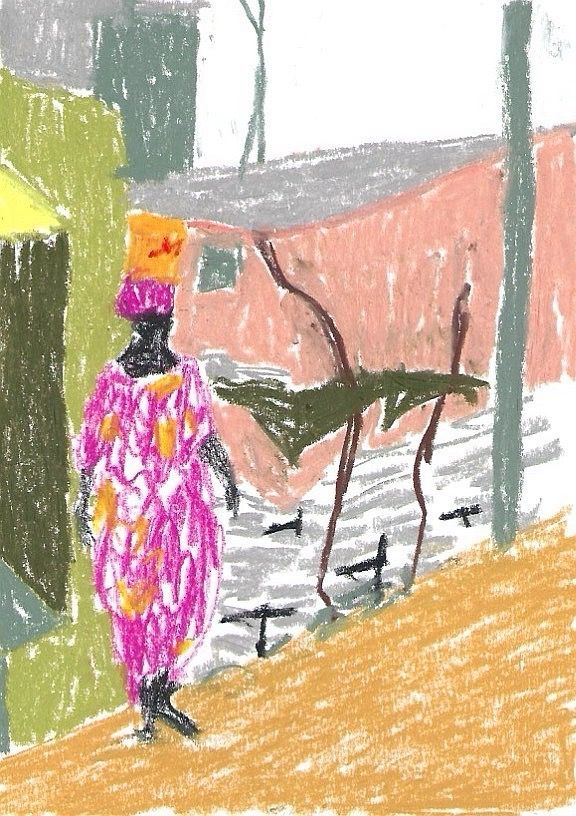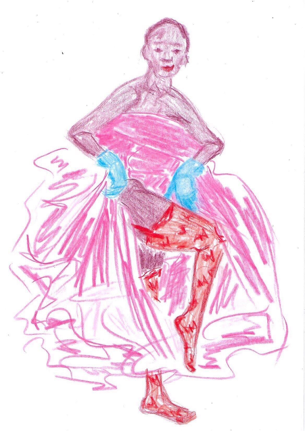 Central Saint Martins, London, and the Arendonk Academy, Belgium. Her primary mediums — colored pencils and oil pastels — bring
