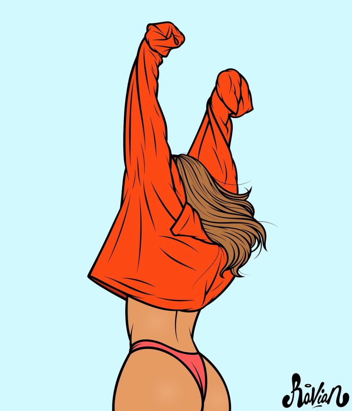 Ravian van Beele (1991), also known as Ravian Derrière and “the butt man,” began his career in the graffiti world. His signature style combines cartoonish playfulness, sensuality, humor, and social commentary. With pastel tones contrasted by bold black outlines, his illustrations carry both visual and conceptual impact, engaging viewers in unexpected and dynamic ways.