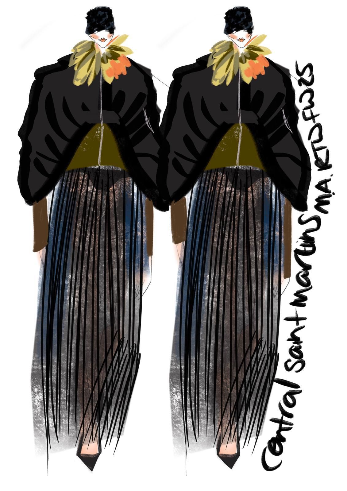 For Soraya, fashion is transformative. “I turn women into superheroes,” she says. Her illustrations portray women adorned in bold, expressive garments, balancing vulnerability and strength through dynamic poses and evocative gestures.