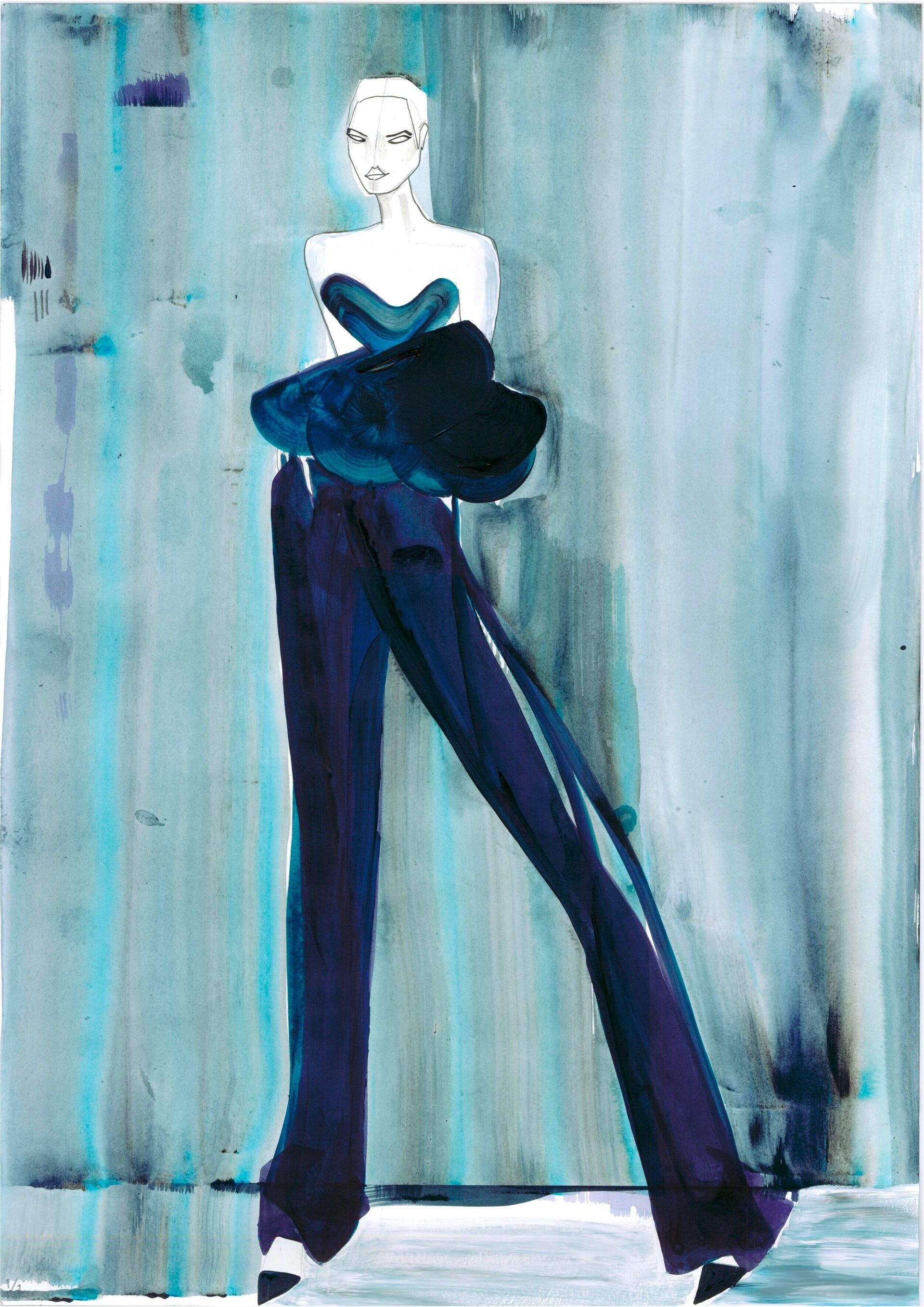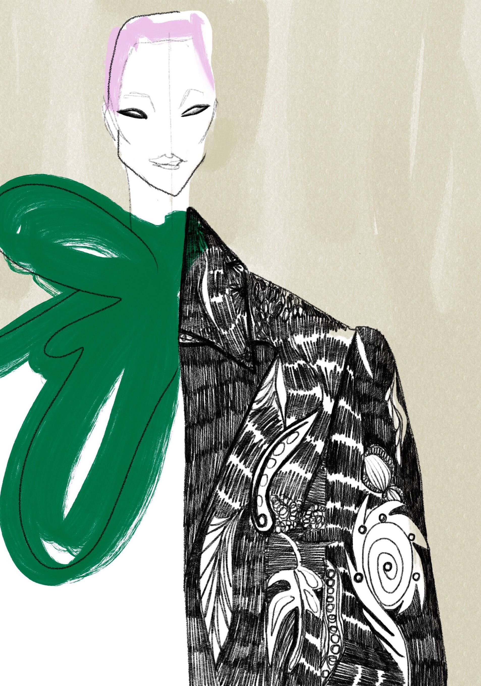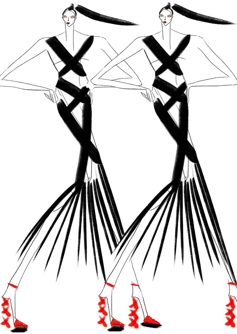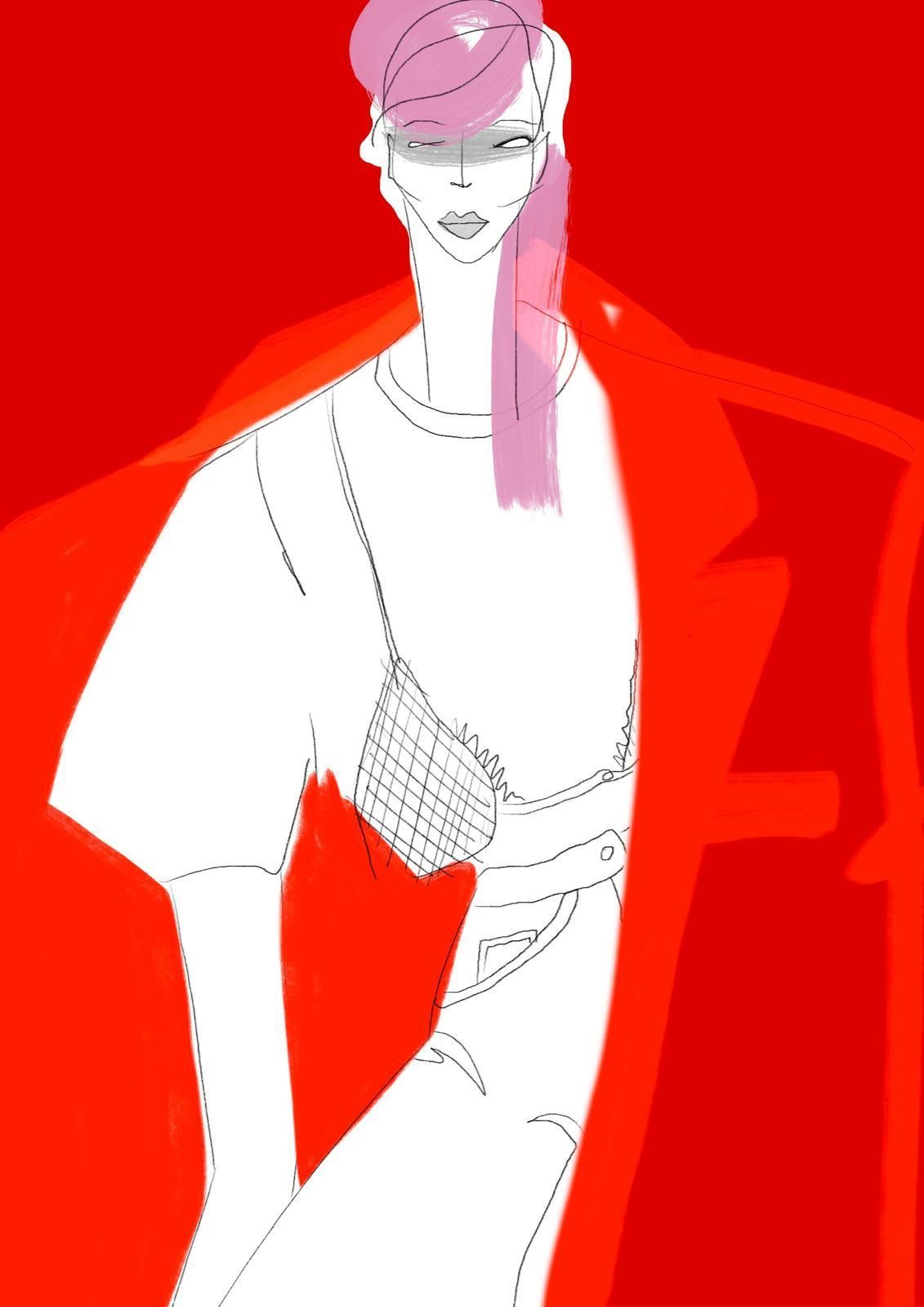 Soraya’s fashion illustrations are instantly recognizable for their edgy style, bold colors, and expressive figures. Defined by exaggerated lines, dramatic shapes, and elegant elongated proportions, her work captures both movement and emotion. She combines analog techniques — acrylic, ecoline, markers — with digital manipulation to create illustrations that are both striking and contemporary.