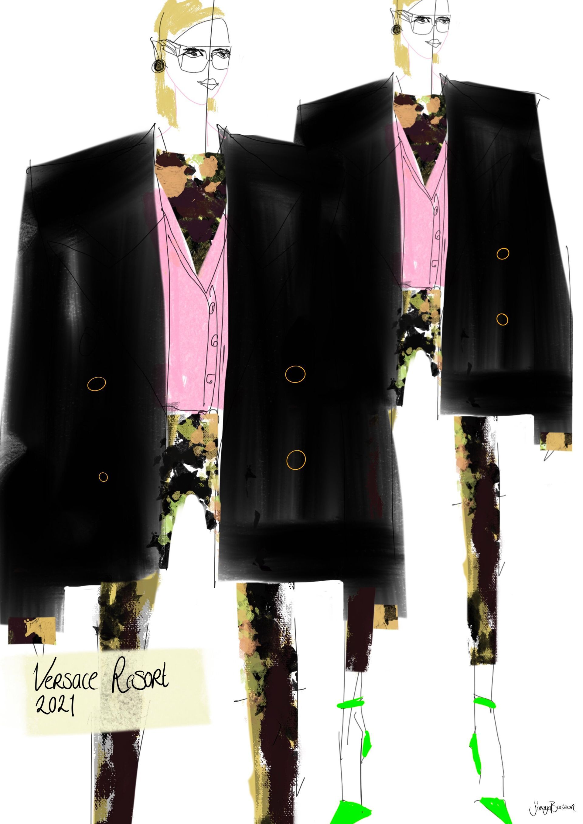 Amsterdam-based fashion illustrator, artist, and stylist Soraya Basiran (1979) brings a dynamic and edgy vision to contemporary fashion illustration. With formal training in fashion design in Amsterdam and a formative internship at Elle, Soraya built a successful career as a stylist, collaborating with influential magazines such as Vogue and prestigious fashion houses including Tommy Hilfiger.