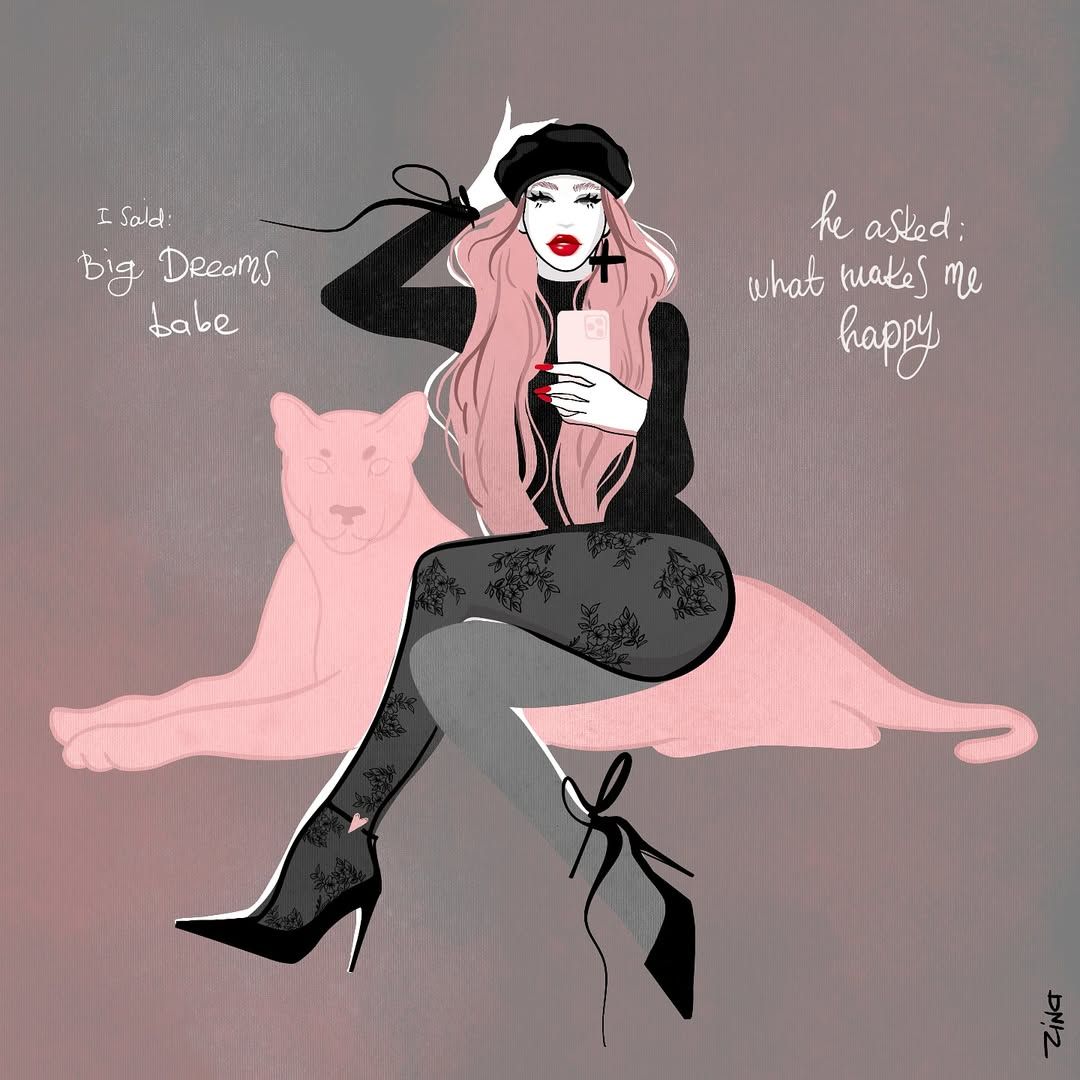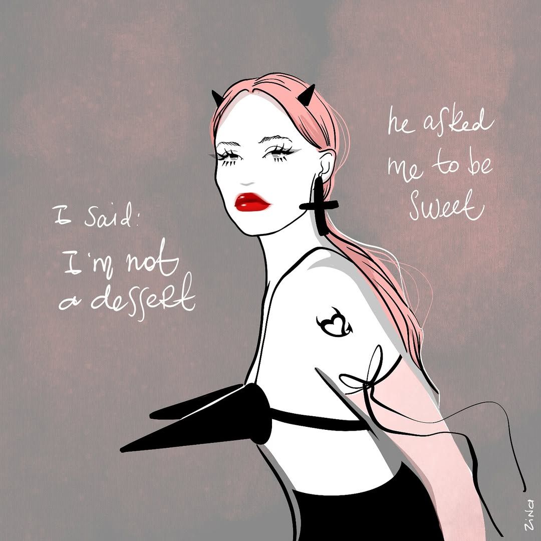 Zina’s work challenges stereotypes and reclaims visual space for female voices. She draws strong, independent young women with a feminist touch, humor, and daring energy, perfectly reflecting today’s generation. Through her bold, graphic style, she captures the zeitgeist and topics of the moment, translating contemporary issues and trends into visually compelling narratives.