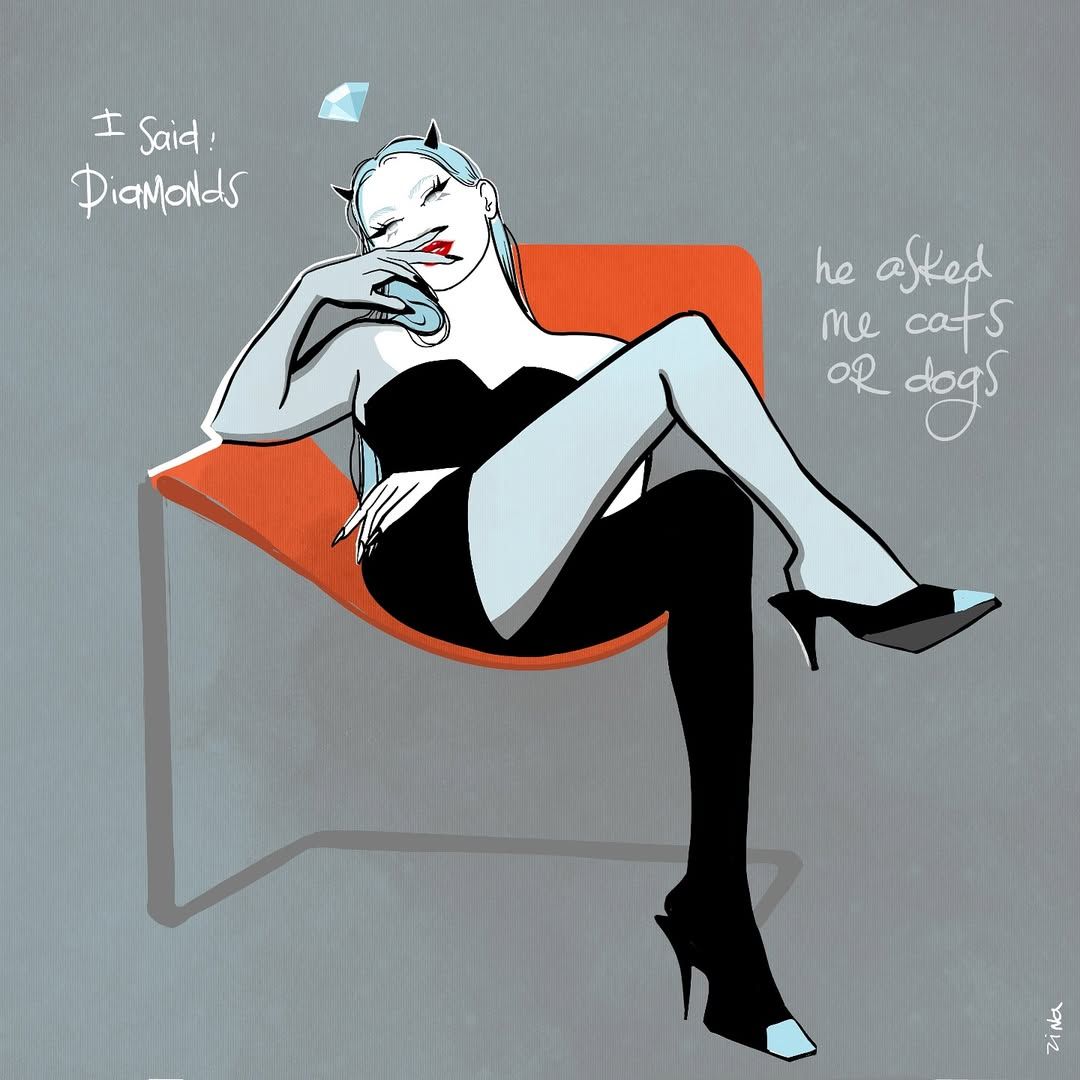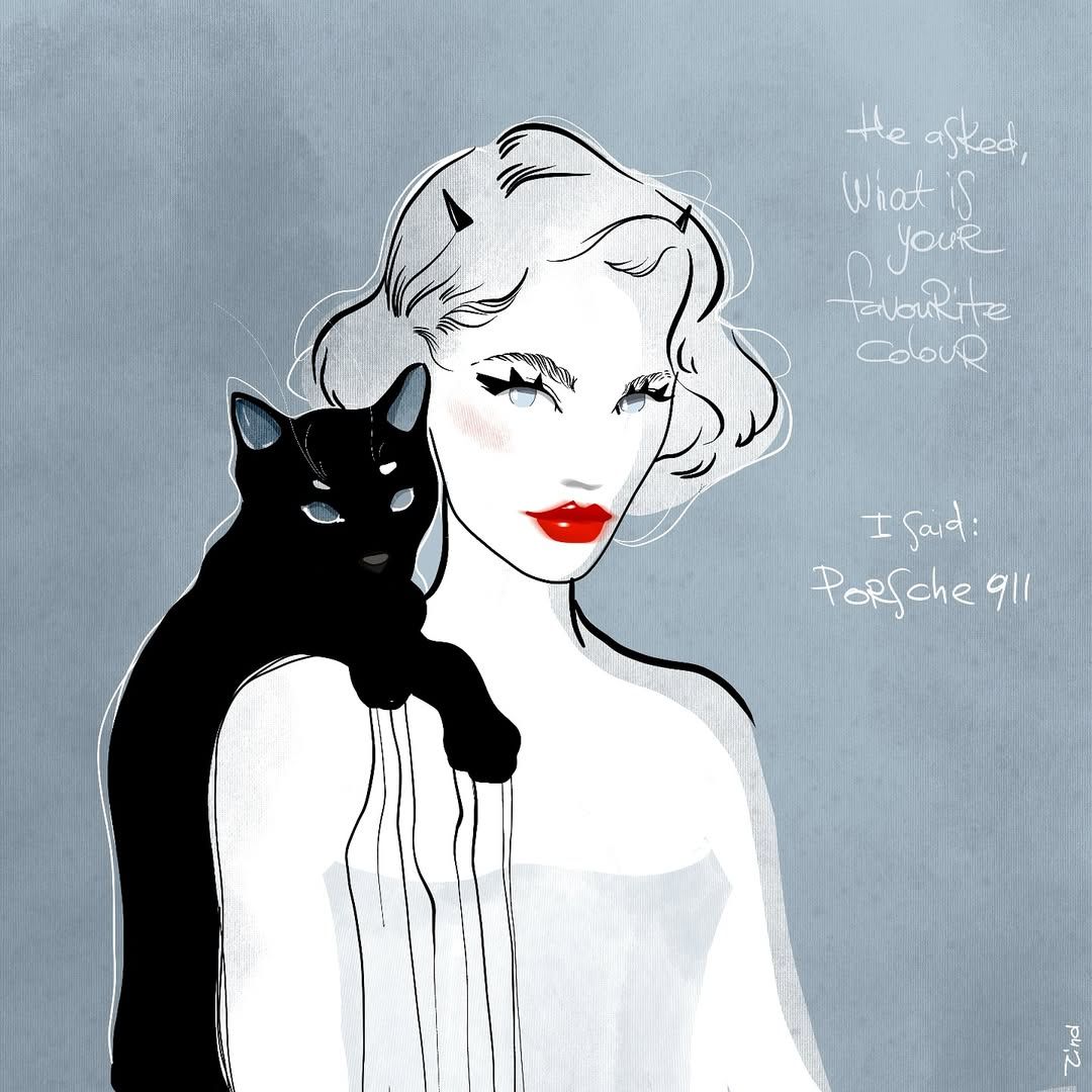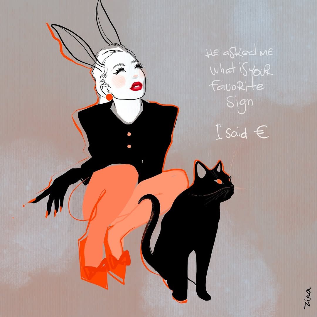 Working from her own concepts or supplied texts, Zina can create striking editorial illustrations, image columns, and visual commentary. Her approach makes her highly versatile for fashion, lifestyle, and concept-driven projects,
