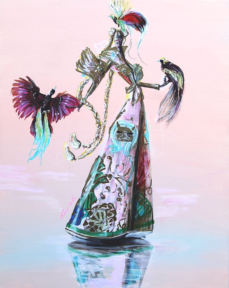 Step into the magical world of Floris Felix — where art, fashion, and flamboyance collide. Known for his signature style of bold lines, vibrant colors, and expressive characters infused with glamour and a touch of magic, Floris brings fashion to life on canvas in striking, larger-than-life compositions.