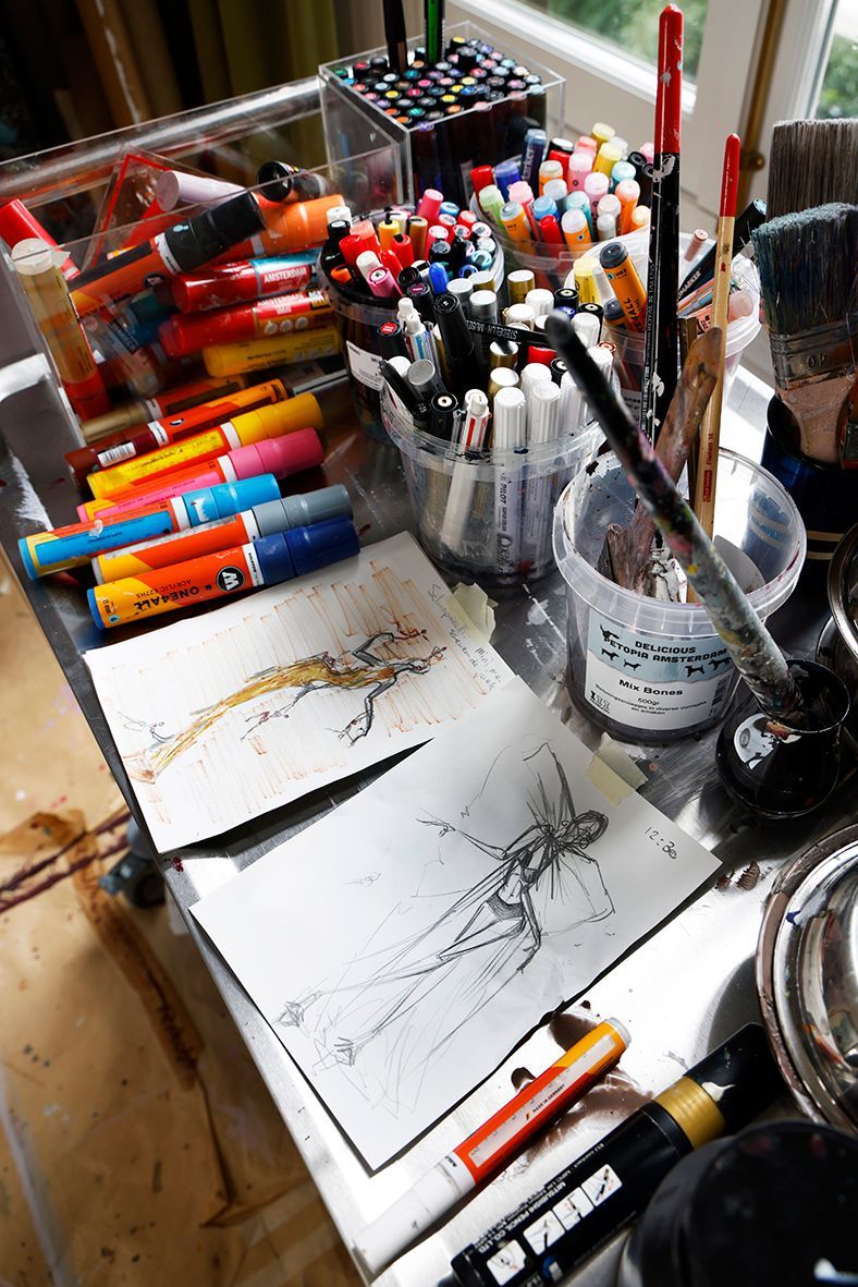 Step into the enchanting universe of Floris Felix — where art, fashion and flamboyance effortlessly collide. Known for his bold lines, vibrant colours and expressive characters full of glamour and a hint of magic, Floris transforms fashion into vivid, larger-than-life works on canvas.