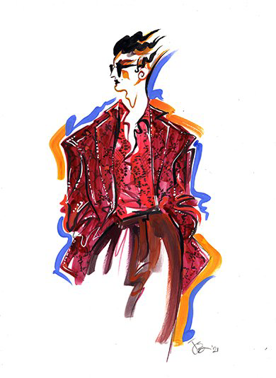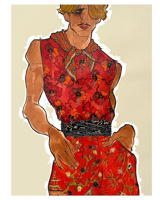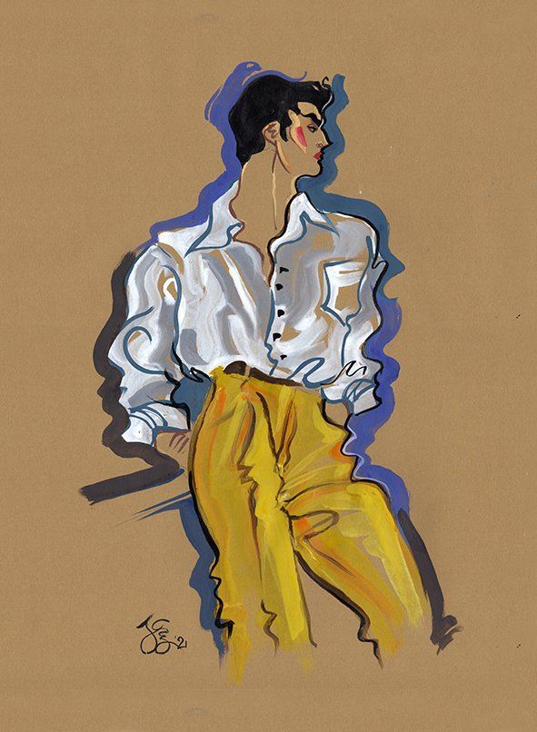 On September 3, 2021, the first solo exhibition of the talented Amsterdam-based artist Julian Stips will open in the I love Illustration Gallery at De Hallen Amsterdam. This expo will be a vibrant and colourful show of fashion illustrations and paintings, featuring a mix of his vintage favourite designers and looks from this year's menswear and couture shows.