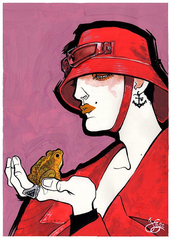 Now he draws again especially fashion has its fascination. He combines round shapes with sleek, graphic backgrounds. His work is imaginative and surreal at the same time. He combines manual drawing (with pencil and pen) with digital collage of elements from his own paintings, watercolors and photography.
