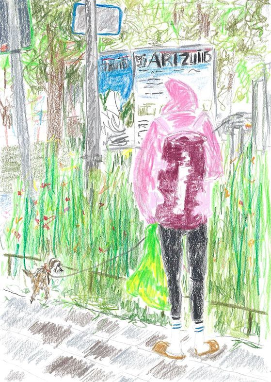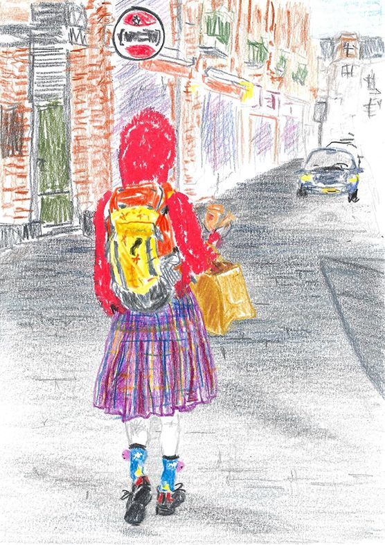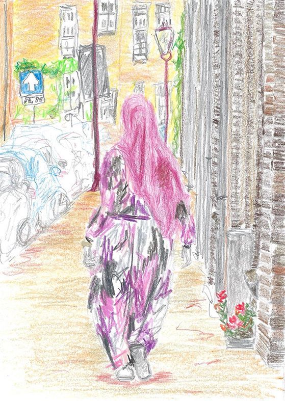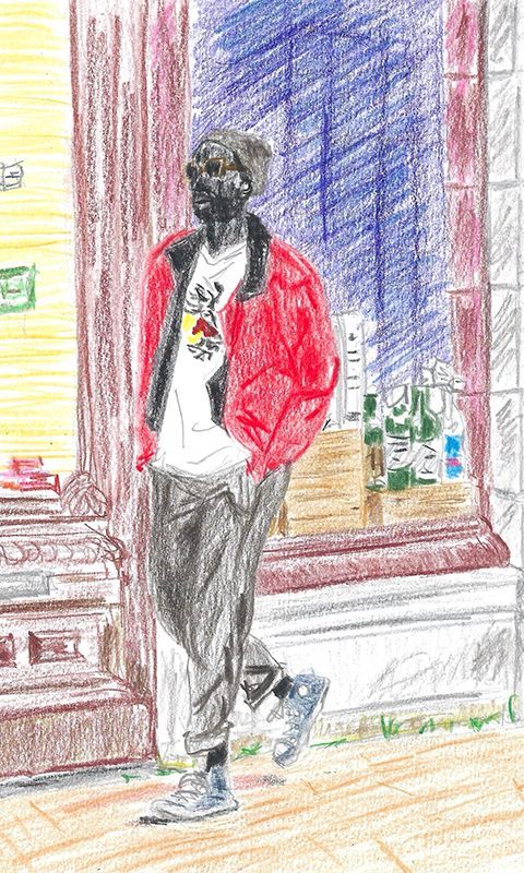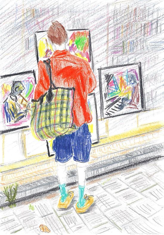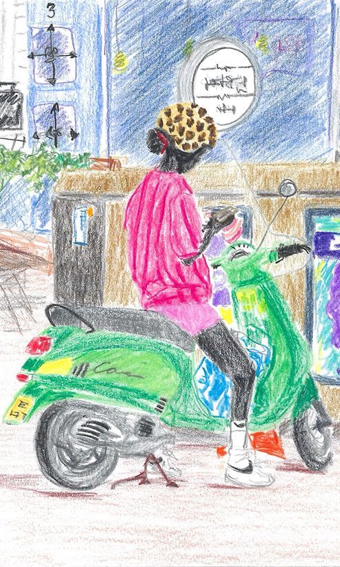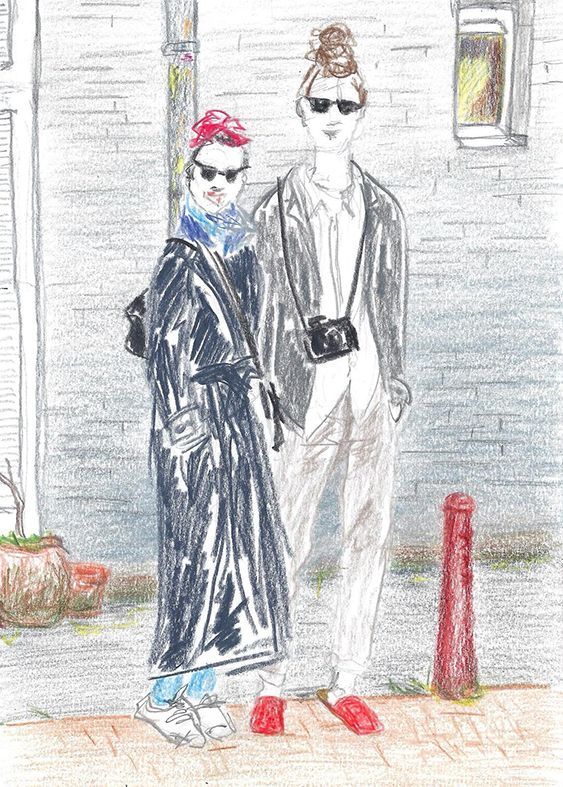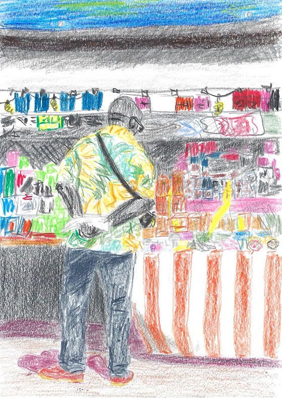 She works mainly in colour pencil and oil pastel and draws very small fashion looks and streetwear.