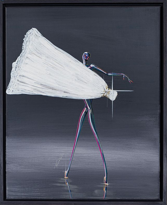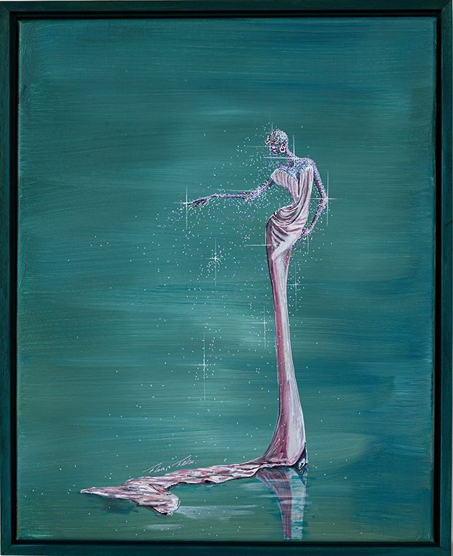 Floris’ paintings are characterised by dynamic lines, rich colour palettes and a strong sense of presence. Iconic fashion figures appear mid-movement, poised between grace and drama, creating a visual universe where femininity, confidence and imagination take centre stage.