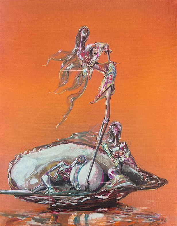 Specs: 50 x 40 cm, Acrylics & oil on linen + Painted wooden frame