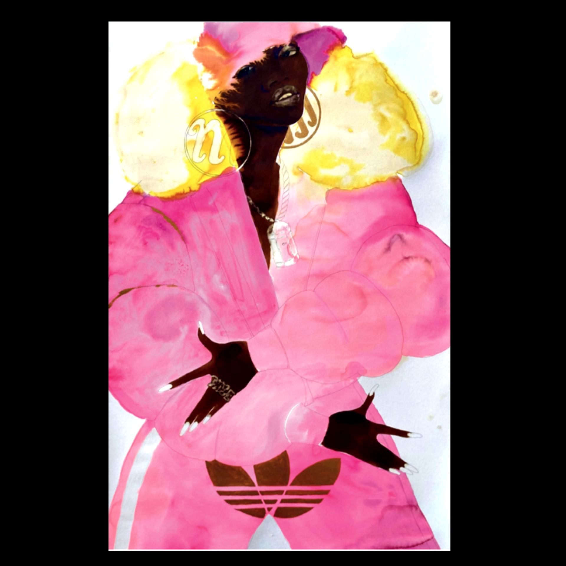 Amsterdam - On the occasion of Black History Month, illustrator Mylo Freeman launches her new series of large-format fashion drawings, entitled 'ReLabeled', which explores the role of the black woman as model, designer and influencer.