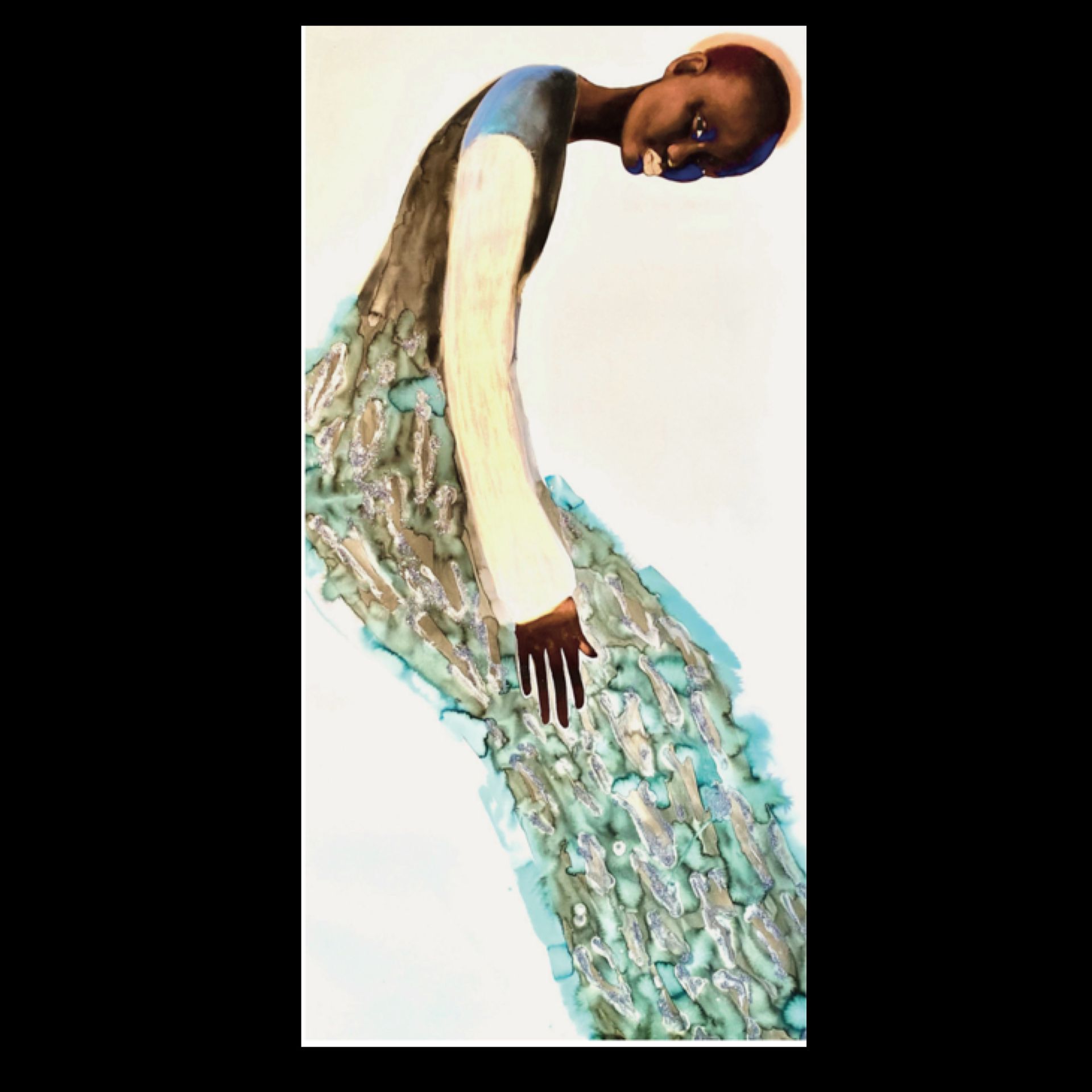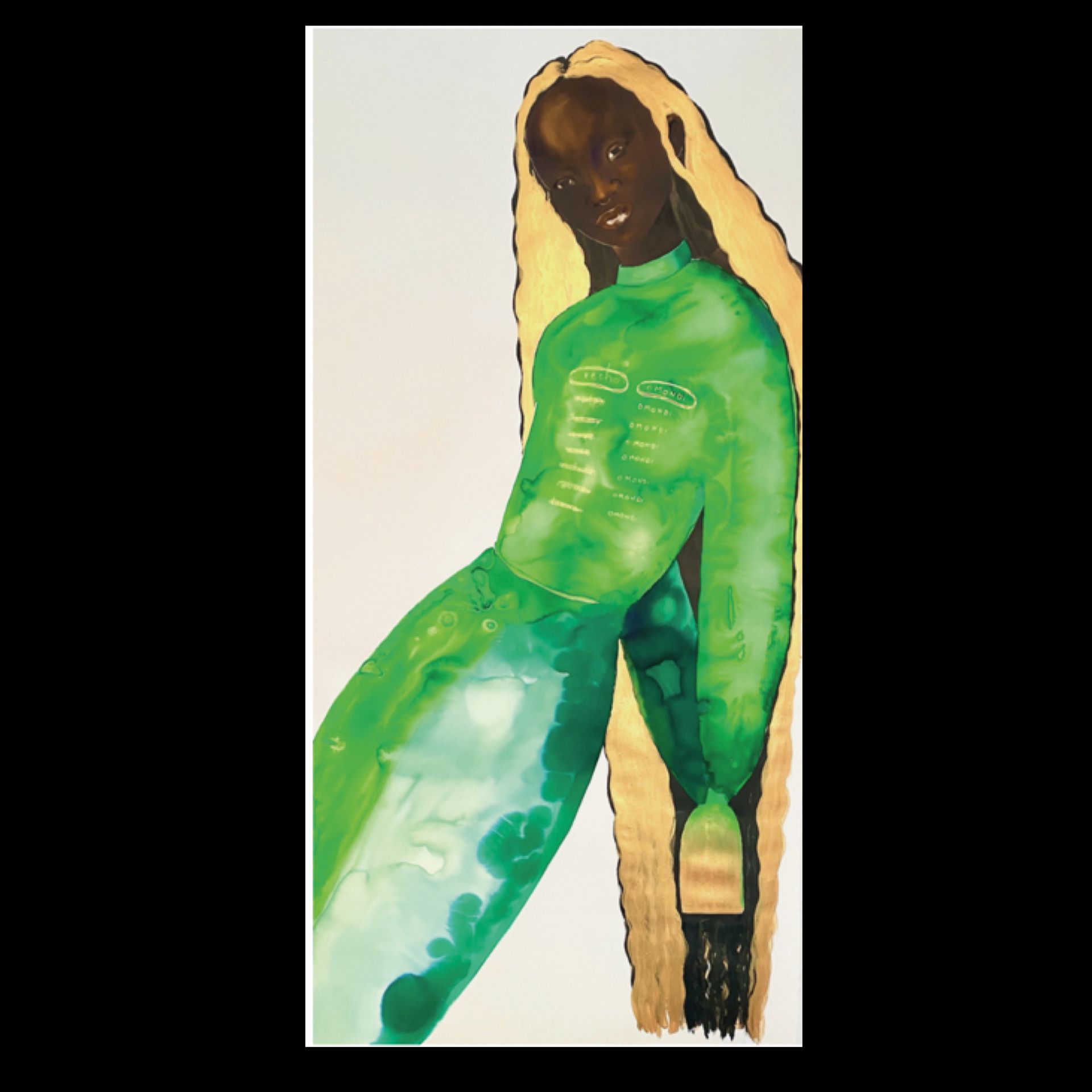 Freeman found the inspiration for this series in the portrait of a black woman painted by Annibale Carraci in 1585. This remarkable portrait depicts a woman of color with an authentic expression and prosperous clothing, suggesting that she may have been a seamstress, although she was not is certain. 'ReLabeled' brings fashion and art together like a time machine that tells a profound social story. Striking is the recurring image of a gold clock in the woman's hands, which appears as a motif in other works.