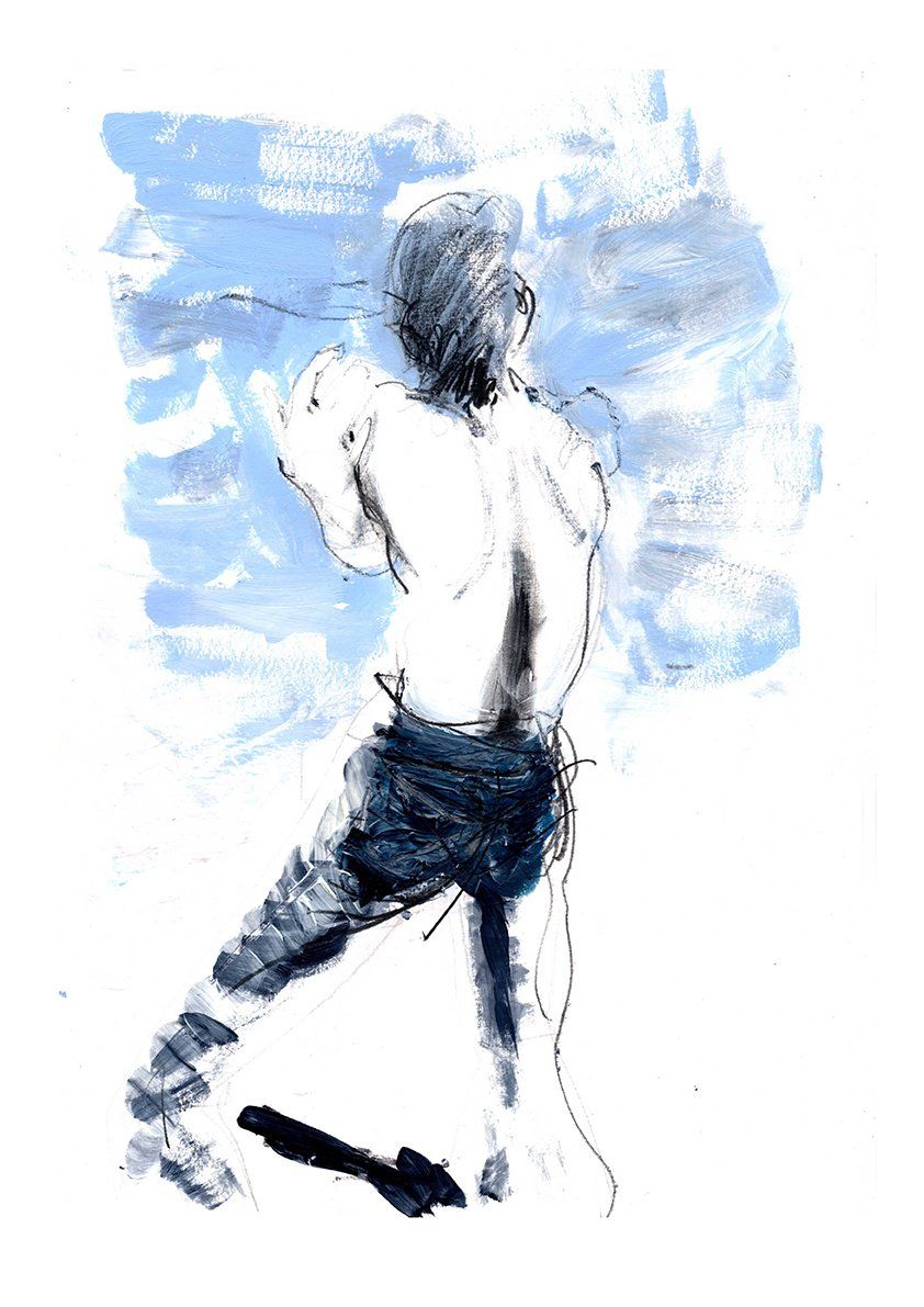 ‘I am interested in capturing anything beyond the physicality of my subjects. Visualizing energetic rhythms of human figures, movements, expressions and looks is what I am conveying, ideally fully guided by my lines.‘