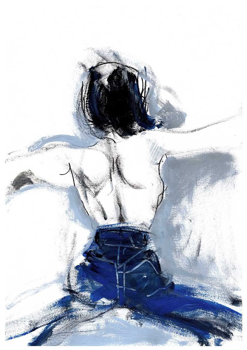 Focusing on illustration and drawing over the last few years she has developed as a fine artist creating a highly feminine, free and suggestive style. Her distinctive signature whose raw minimalistic abstraction creates a sense of ambiguity, is influenced by both fashion and fine art history such as René Bouché and Egon Schiele. She has explored her passion for nudes in a variety of media incorporating marker, ink, crayon and acrylic on paper. Petra Lunenburg reveals a world of allure created by sensuous and seductive portrayals of her subjects.